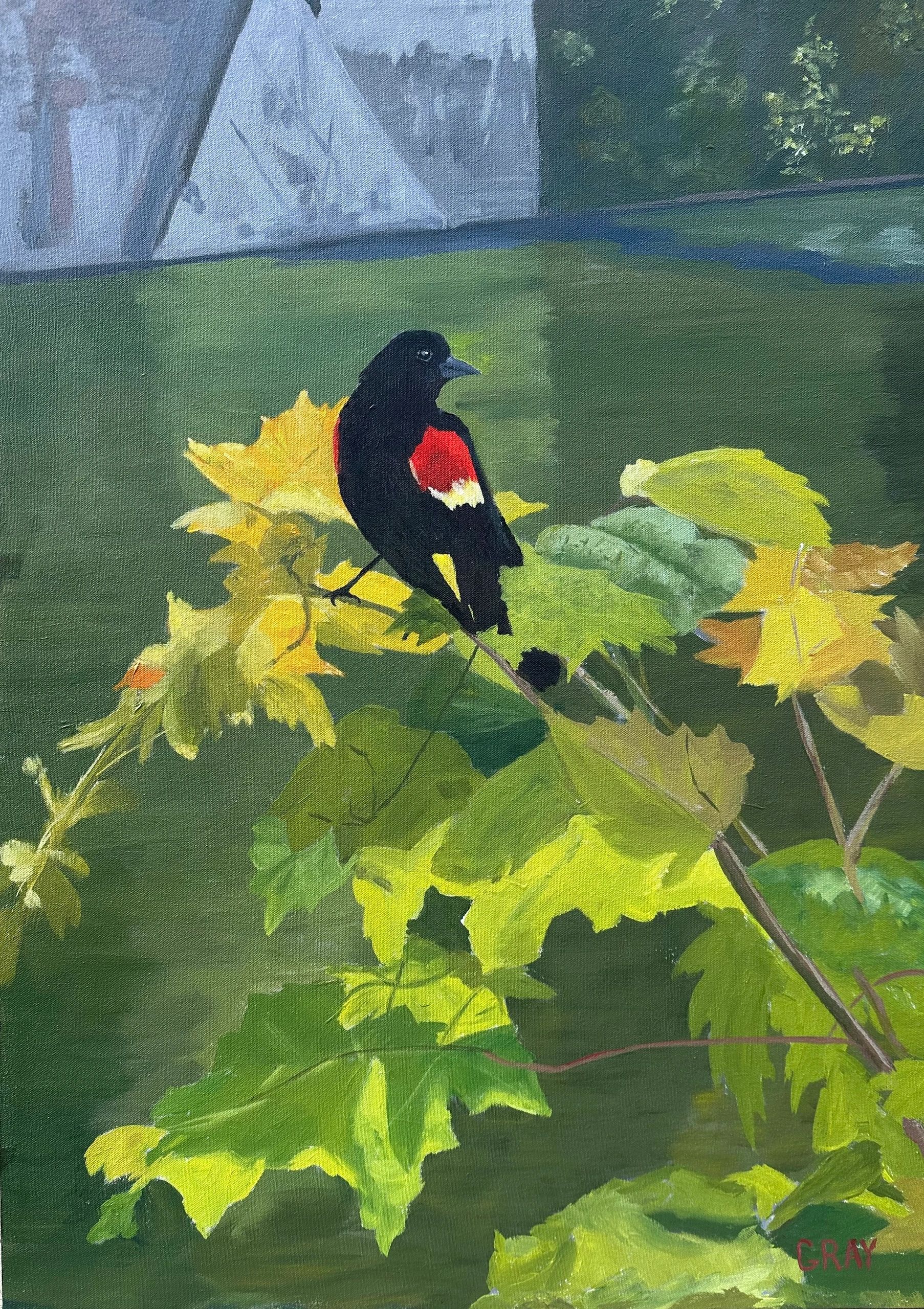 Blackbird Singing in Springbank Park - 24” x 34” - Acrylic on Canvas - Available for sale